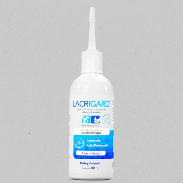 LACRIGARD® é uma solução higienizadora não irritante para a remoção de crostas de sujeira, limpeza e neutralização de odores da face e contorno dos olhos de cães e gatos.