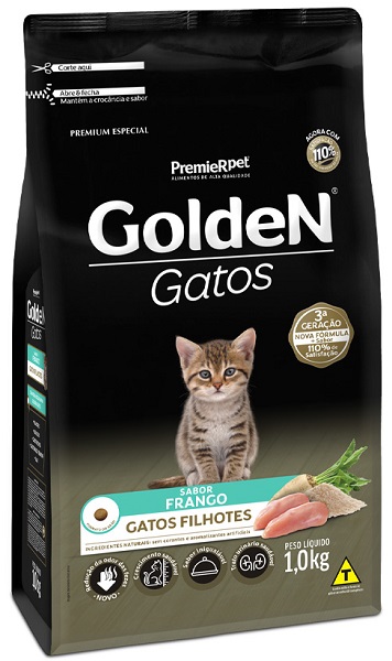 Detalhes A Ração Golden Gatos Filhotes Sabor Frango é perfeitamente balanceada e atende por completo às necessidades de seu pequeno felino, oferecendo níveis ótimos de energia, proteínas, vitaminas e minerais, nutrientes indispensáveis para um desenvolvimento pleno e saudável.