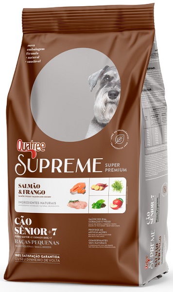 Composição Farinha de vísceras de frango, proteína isolada de suíno, farinha de salmão, ovo integral desidratado, arroz quebrado, sorgo integral moído, farinha de batata doce, levedura de cerveja, polpa de beterraba (mín. 2,0%), gordura de frango, gordura suína, semente de linhaça, lignocelulose, inulina (FOS) (mín. 0,15%), mananoligossacarídeo (MOS) (mín. 0,1%), cloreto de sódio (sal comum), farinha de algas (DHA), cloreto de potássio, sulfato de glucosamina, sulfato de condroitina, taurina, metionina, hexametafosfato de sódio (mín. 0,3%), zeólita, L-carnitina, extrato de yucca (mín. 0,05%), extrato de maçã (mín. 0,05%), extrato de chá verde (mín. 0,01%), glucanos, extrato de alecrim, tocoferol, ácido propiônico, hidrolisado de fígado de frango e suíno, vitaminas (A, D3, E, B1, B2, B6, B12, K3, C, niacina, biotina, cloreto de colina, ácido fólico, ácido pantotênico), minerais (iodato de cálcio, sulfato de ferro, sulfato de zinco, sulfato de cobre, selenito de sódio, sulfato de manganês), minerais quelatados (manganês, selênio e zinco). Código de barras 7898256301438